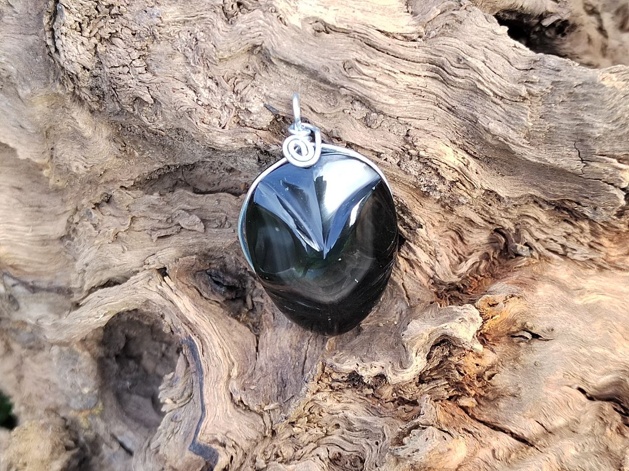 L’obsidienne œil céleste ou arc en ciel est pierre avec des reflets. On dirait qu’un œil vous regarde avec une irisation couleur arc en ciel.